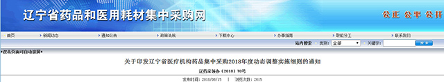 動(dòng)態(tài)調整方式:對截至到2018年8月14曰通過(guò)國家仿制藥質(zhì)量和療效一致性評價(jià)的藥品 (以國家藥品監督管理局公告為準)和國家談判藥品的仿制藥、已在遼寧省藥品和醫用耗材集中采購平臺掛網(wǎng)采購的藥品, 實(shí)行參考價(jià)掛網(wǎng)采購。