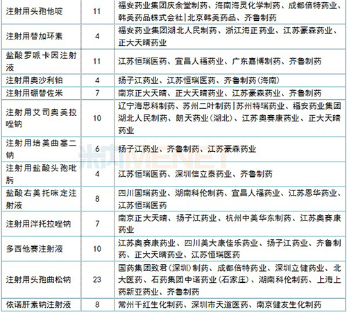 正在審評的注射劑一致性評價(jià)補充申請情況(3家及以上)