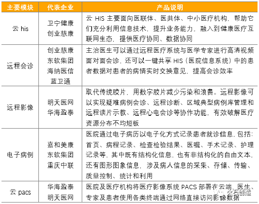 表1 醫療信息化主要模塊代表企業(yè)(來(lái)源:根據公開(kāi)資料整理)