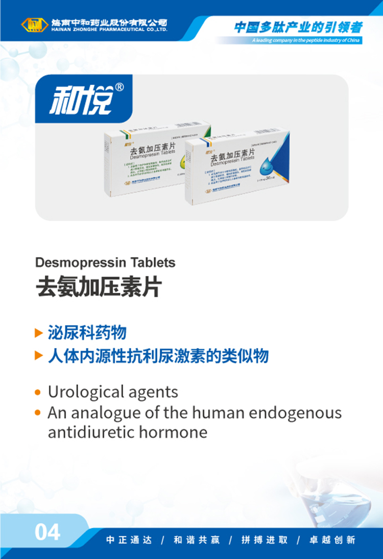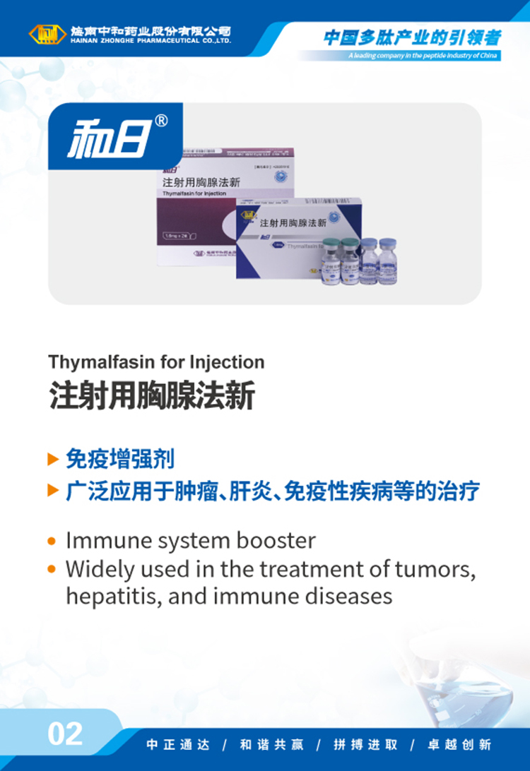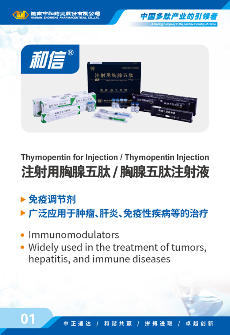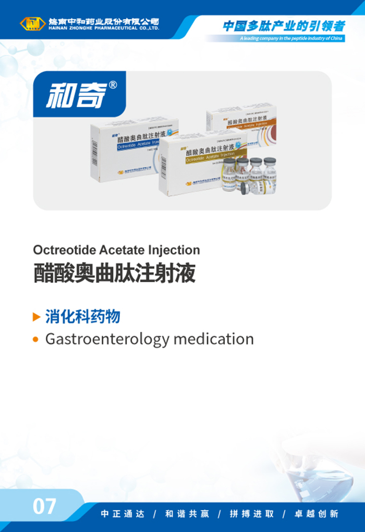 海南中和藥業(yè)股份有限公司(以下簡(jiǎn)稱(chēng)中和藥業(yè))成立于1995年4月17日,為我國最早專(zhuān)門(mén)從事化學(xué)合成多肽藥物的研究和實(shí)現產(chǎn)業(yè)化的國家高新技術(shù)企業(yè),中國國內第一個(gè)化學(xué)合成多肽類(lèi)新藥“注射用胸腺五肽”就由中和藥業(yè)自行研發(fā)上市,填補了中國多肽產(chǎn)業(yè)的空白。歷經(jīng)近30年的發(fā)展,公司產(chǎn)品已涵蓋免疫、腫瘤、肝病、心血管、內分泌、婦科圍產(chǎn)等多個(gè)治療領(lǐng)域,并擁有多肽原料藥、化學(xué)原料藥及小容量注射劑(包括預灌封、卡式瓶)、凍干粉針劑、片劑、膠囊劑等多種劑型的生產(chǎn)能力,產(chǎn)品已成功出口韓國、烏茲別克斯坦等多個(gè)國家和地區。