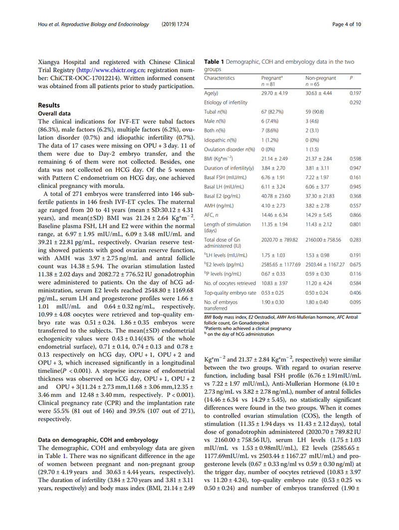 hCG觸發(fā)的子宮內膜回聲改變對預測IVF妊娠結局的價(jià)值:前瞻性隊列研究